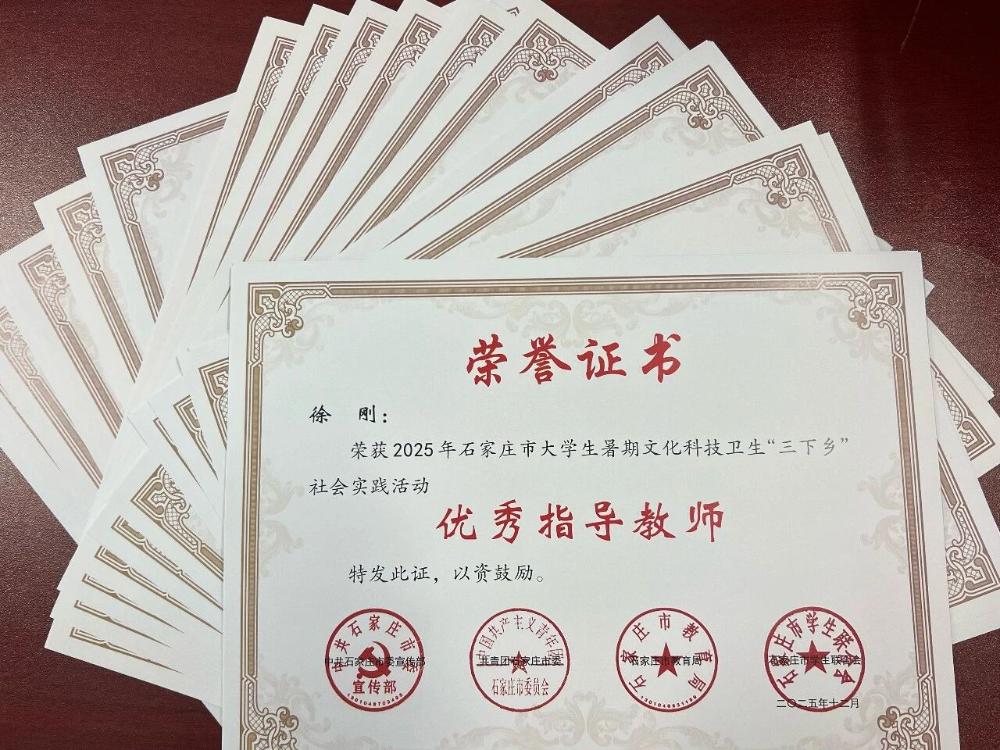 近日,《河北省教育厅关于公布2025年暑期河北省大学生“体验省情·服务群众”主题实践活动结果的通知》发布,全省共评选出优秀调研报告100篇,我校《河北省青年友好型省份建设调研报告》获评“优秀调研报告”。此外,我校被中共石家庄市委宣传部、共青团石家庄市委、石家庄市教育局、石家庄市学生联合会等部门授予“2025年石家庄市大学生暑期文化科技卫生‘三下乡’社会实践活动优秀组织单位”荣誉称号,20支实践团队获评“先进团队”、29名教师获评“优秀指导教师”,20名学生荣获“先进个人”,《关于“三下乡”助力弘扬长城文化活动的调研报告》获评“优秀调研报告”。